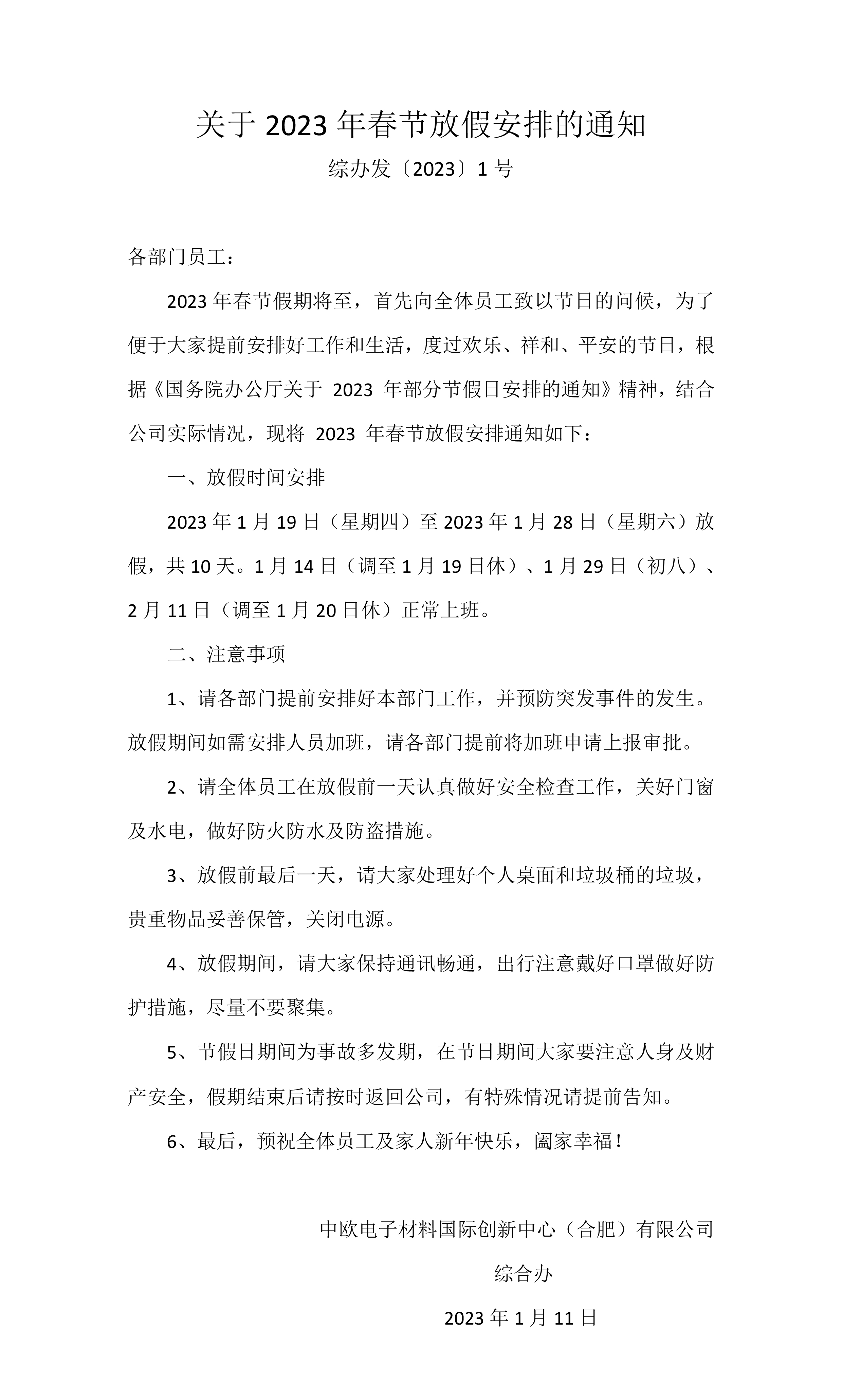 安博(中国)2023 年元旦节放假安排的通知