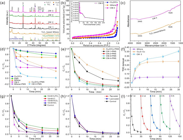 图3. Cu2O/Cu@MXene降解四环素的机理探究。