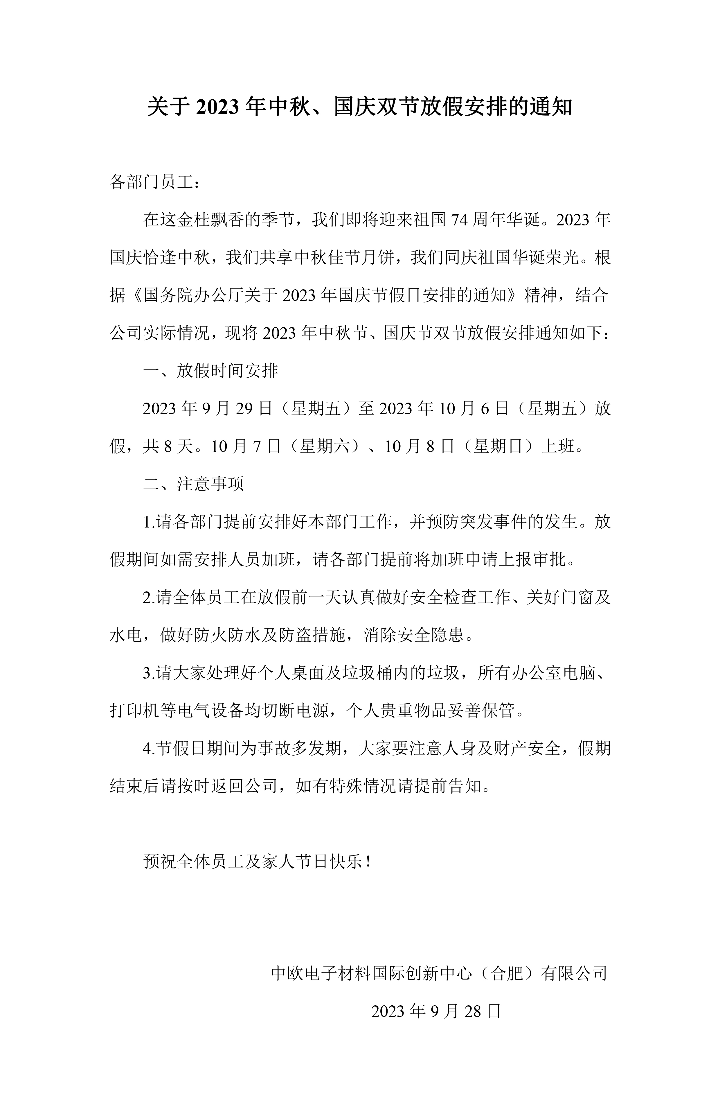 安博(中国)中秋、国庆双节放假安排的通知