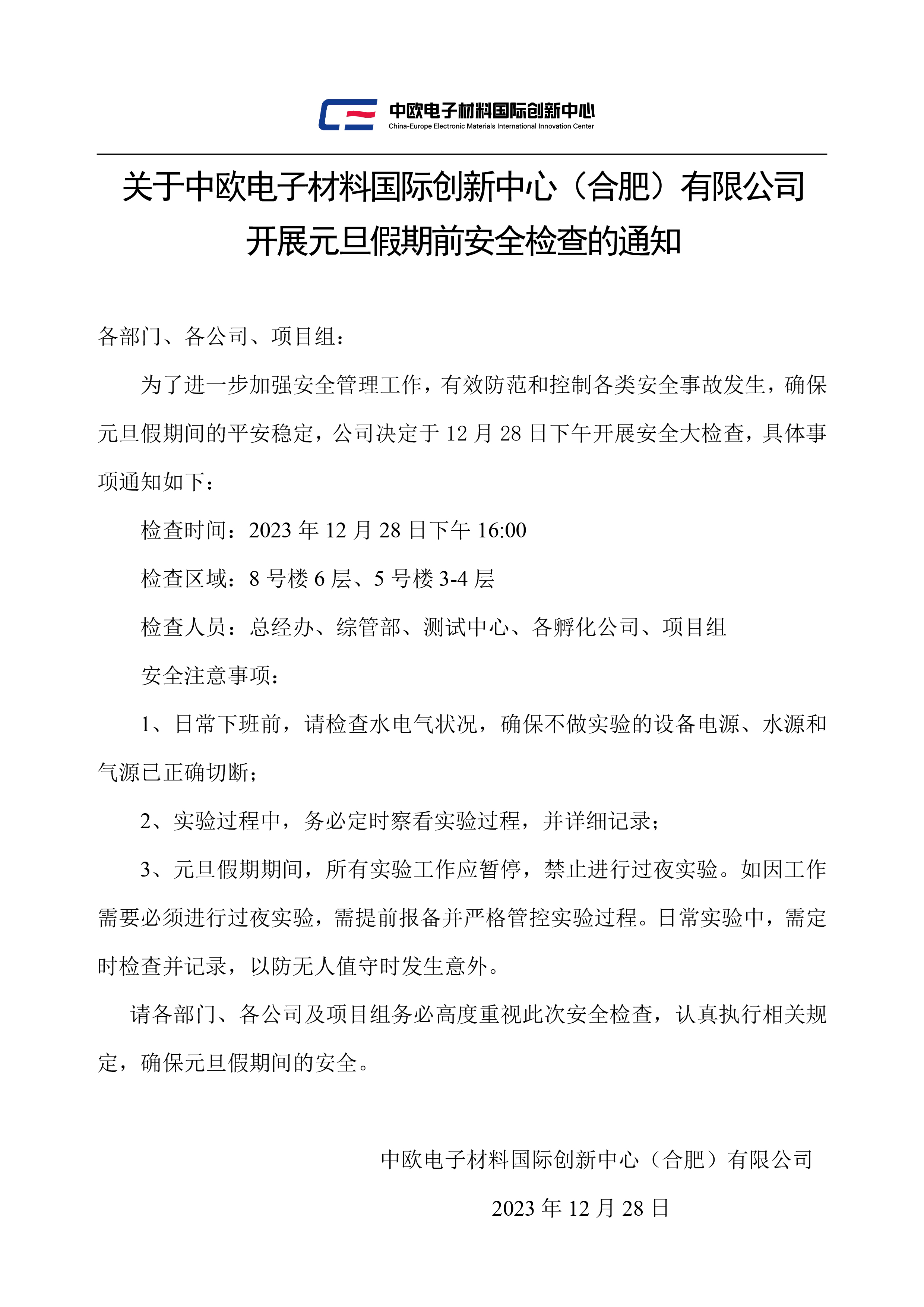 安博(中国)开展元旦假期前安全检查的通知