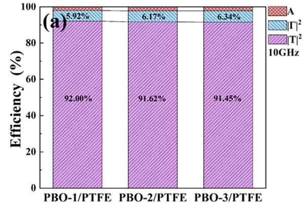 图4. 10GHz时不同PBO纤维/PTFE透明波复合材料透波率(T)