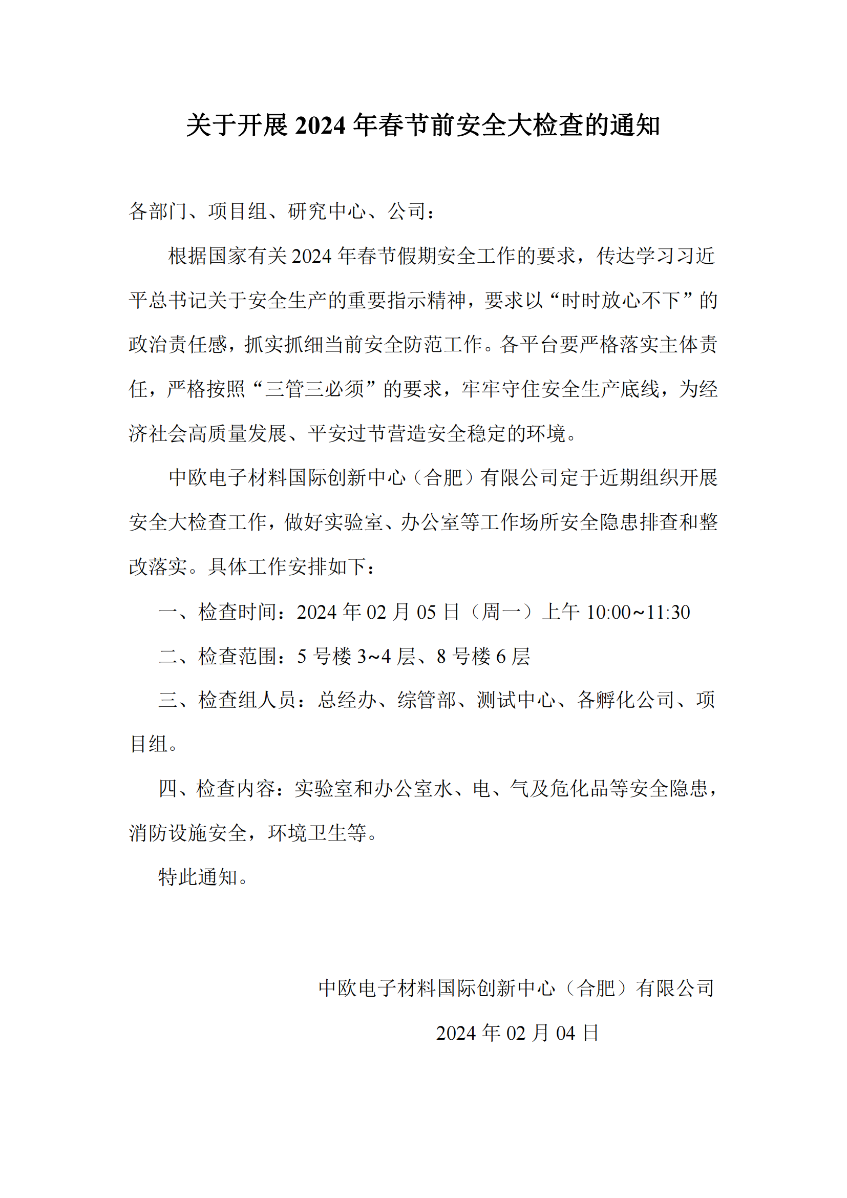 安博(中国)开展2024年春节前安全大检查的通知