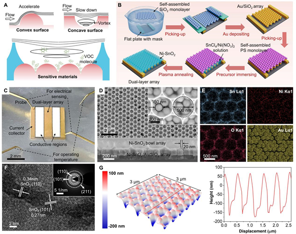 近期,中国科学院合肥物质院固体所纳米材料与器件技术研究部在电学-谱学双模监测气体传感器的创新设计与可控制造方面取得新进展,相关研究成果以“Vortex Engineering on Oxide Bowl-Coated Oxide/Gold Dual-Layer Array for Dual Electrical/Spectroscopic Monitoring of Volatile Organic Compound”为题发表在Advanced Functional Materials (Adv. Funct. Mater., 2024, 2402173)上。