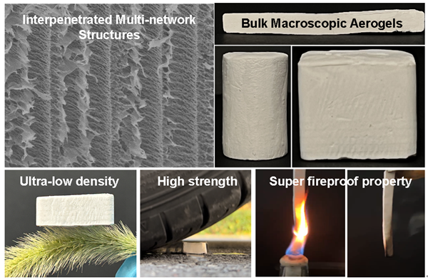 上述研究不仅突破了气凝胶耐温与高强度不兼容的局限,而且为极端条件下高效隔热、防火和机械坚固方面协同优化开发与应用提供了新材料。