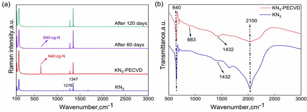 中国科学院合肥物质科学研究院固体物理研究所王贤龙研究员团队以第一性原理计算为理论依据,采用叠氮化钾为前驱体,基于自主研建的等离子体增强化学气相沉积装置,成功在常压下合成了具有类金刚石结构的高含能立方偏转聚合氮,为立方聚合氮的宏量制备提供了一种简单高效的方法。相关成果以“Free-standing cubic gauche nitrogen stable at 760 K under ambient pressure”为题发表在Science Advances (Sci. Adv. 10, eadq5299 (2024) )上。 高能量密度材料是一类能够短时间内产生极大能量的物质,被广泛用于军事、矿业和建筑等领域。由于氮的N-N单键与氮气分子的N≡N三键有巨大的能量差,并且其释放能量之后的产物是氮气,兼具绿色环保的特点,所以立方偏转聚合氮(cubic gauche nitrogen, cg-N)是新型高能量密度材料的典型代表之一。