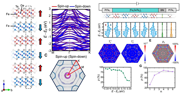 图2. 自旋简并的A型范德华反铁磁体Fe4GeTe2 及其界面自旋极化。